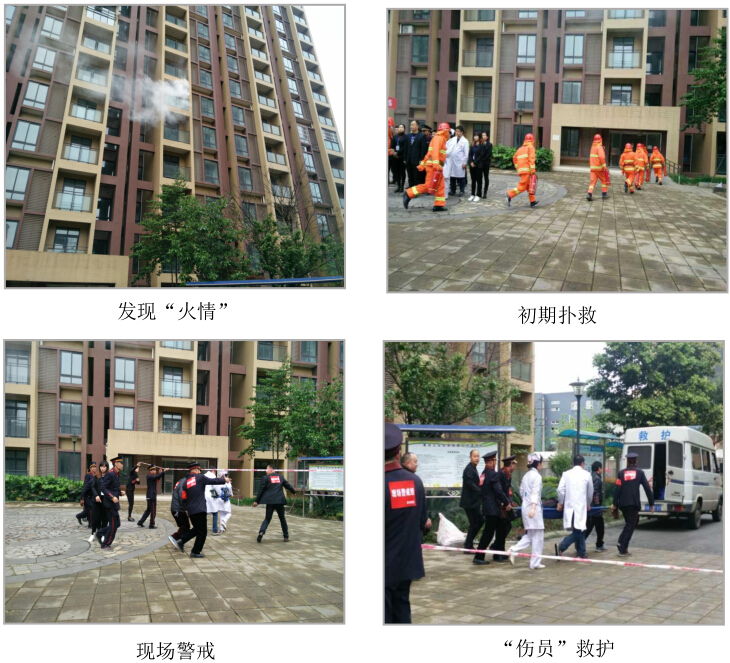 2017 年 4 月 11 日下午,成都居安物业 有限责任公司为提高员工及业主的消防安 全意识,切实提高消防“三懂三会”能力, 在青白江区华逸馨苑小区组织了一次消防 应急演练。区房管局、红阳街道、蔡家庙 社区、华严社区及居安物业公司的领导莅 临现场和部分居安物业服务小区的业委会 代表一道观摩了演练。 下午 15 时,刺耳的警报声打破了华逸馨苑小区的宁静,滚滚浓烟顿时弥漫 了整个小区,“报告消防控制中心,华逸馨苑 4 栋 1 单元 6 层 603 号住房发生火 情,请立即派人支援!”物业服务中心消防控制室接到“火警”信息后,立即启 动消防应急预案,安排秩序队员立即赶到“火灾”现场对初期“火灾”进行扑灭。 当“火势”失控蔓延后,他们一边拨打 119 火警电话,一边根据现场“火势情况”, 组织人员疏散。此次演练从发现火情到向消防控制中心报告,从火灾初期扑救到 拨 119 电话报警,从全场警戒到组织群众疏散、营救被困人员,物业服务中心指 挥得当,组织有序,有效扑灭“火灾”。 演练主要针对高层建筑灭火救人进行的一次实战演练,让物业队员在“火海” 中演练了一旦高层楼房现场“失火”,如何扑救与疏散的程序,提高了扑救高层 建筑火灾能力。 本次演练得到了上级主管领导的好 评,他们对华逸馨苑物业全体员工的消防 工作给于了肯定,同时也要求居安物业公 司要进一步提高消防安全意识与技能,加 强对火灾隐患的排查整改,强化消防安全 措施,为广大小区居民营造良好的消防安 全环境。
